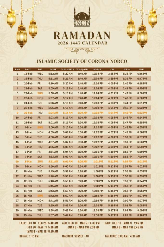 | February 17, 2026 | Tuesday | 8:00 PM | First Taraweeh ↗ |
